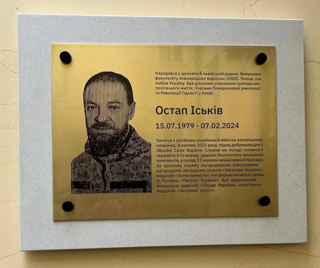 9 вересня 2025 року у Львівському національному університеті ім. Івана Франка, на факультеті міжнародних відносин, урочисто відкрито пам’ятну меморіальну дошку Герою України Іськіву Остапу Всеволодовичу